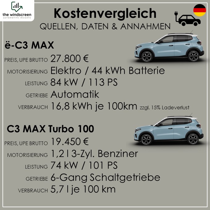 - Citroën C3 als Verbrenner und E-Auto im Kostenvergleich: Welche Versionen werden verglichen?